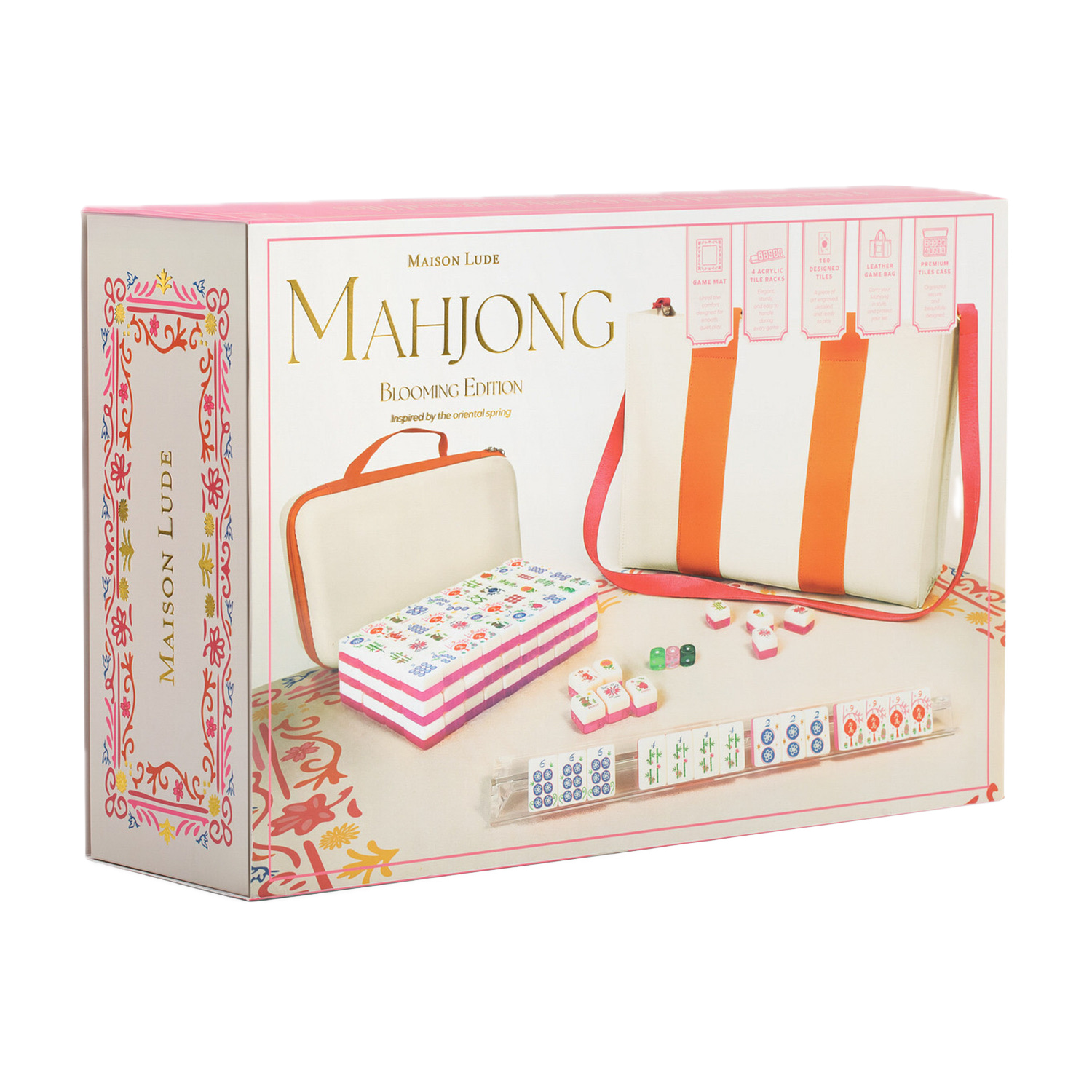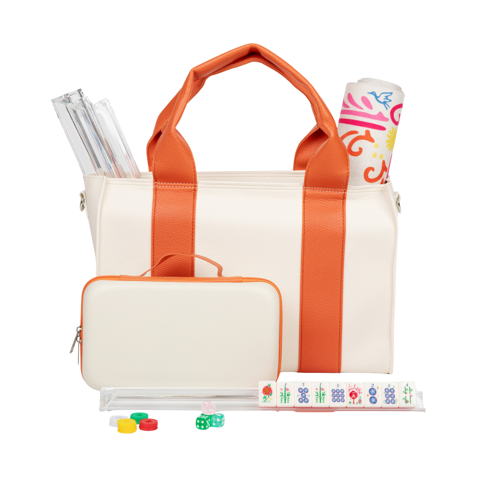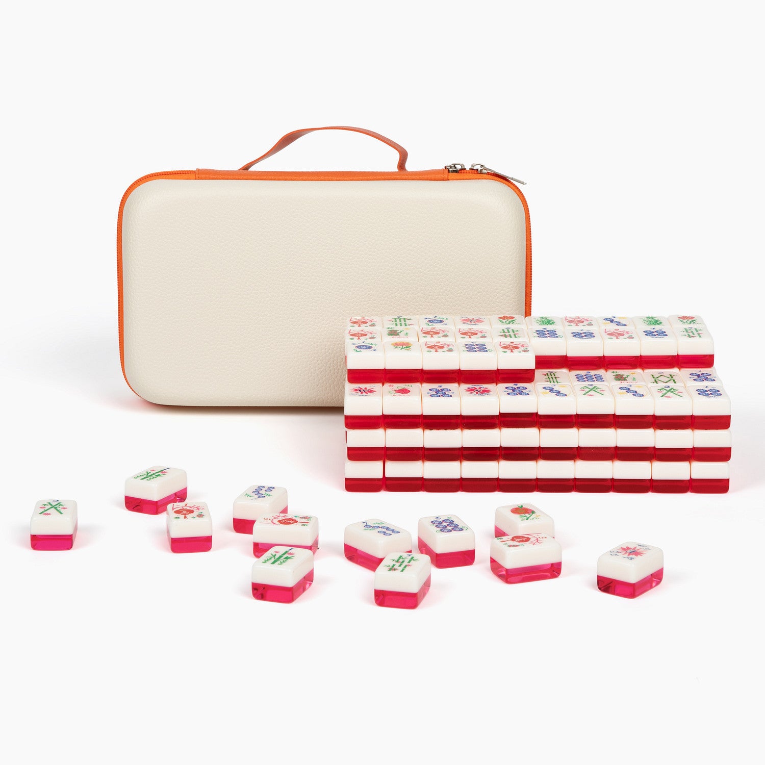 Comes with a vibrant vegan leather carrying bag and matching hard-sided tile case, designed keep your tiles safe. Durable, eye-catching, and portable, Mahjong is made for game nights, travel, and gifting.